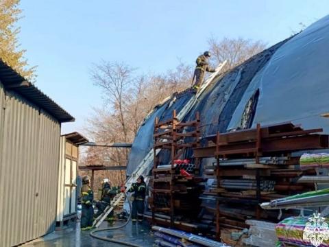 По информации ведомства, открытое горение было ликвидировано на площади около 60 квадратных метров. В настоящее время продолжаются работы по разборке и проливу конструкций здания.