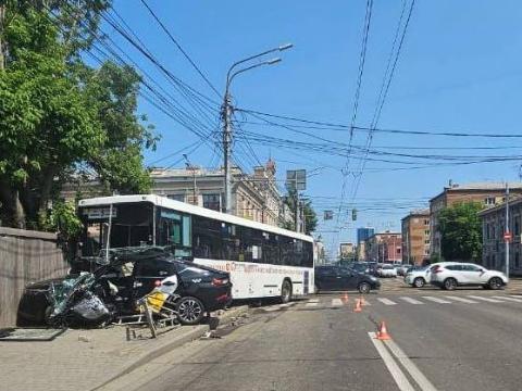 В субботу, 14 июня, в центре Красноярска произошло дорожно-транспортное происшествие с участием автобуса одного из городских маршрутов общественного транспорта. В результате ДТП, минимум, два человека пострадали.