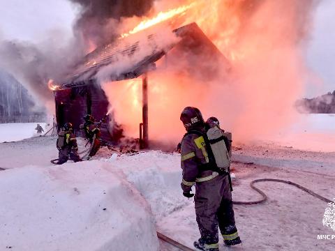 По данным ведомства, огонь вспыхнул в доме примерно в шесть часов вечера. К моменту прибытия сотрудников МЧС здание было полностью охвачено пламенем. В результате обгорели стены дома, обрешетка, крыша.