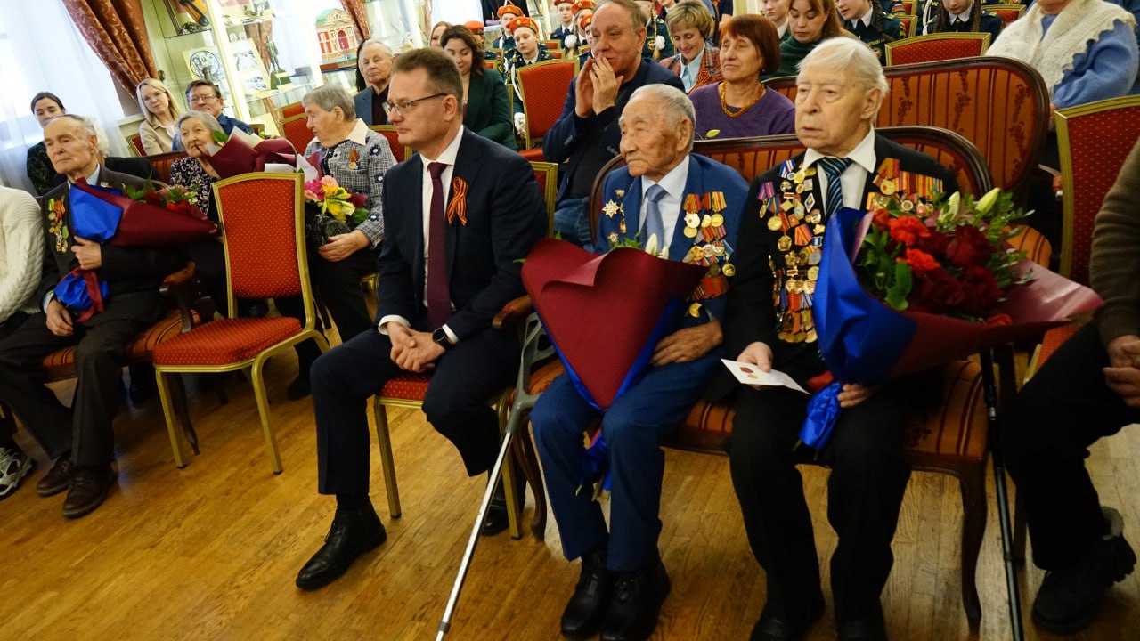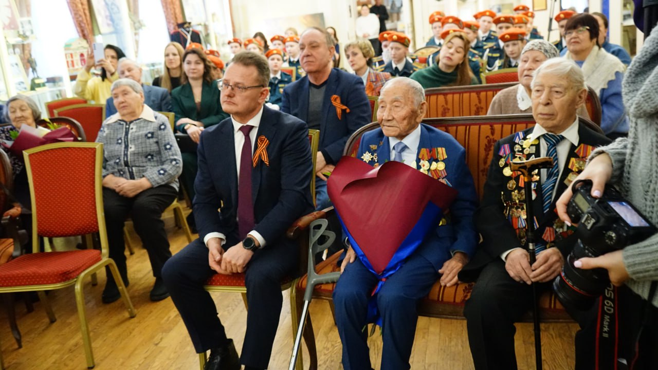 – День Победы – самая великая дата в нашей истории. Советский народ победил фашизм, мы должны помнить об этом подвиге, рассказывать детям и внукам. Благодарим судьбу, что имеем возможность общаться с очевидцами тех событий, узнавать подробности из первых уст. Вы – поколение победителей. Опираясь на созданное вами, мы можем идти вперед, развиваться. Нам есть на кого ровняться, кем гордиться. На ваших примерах служения Отечеству мы воспитываем подрастающее поколение, поддерживаем участников специальной военной операции. Иркутск по праву носит звание «Город трудовой доблести». Низкий вам поклон, – обратился к присутствующим Руслан Болотов.