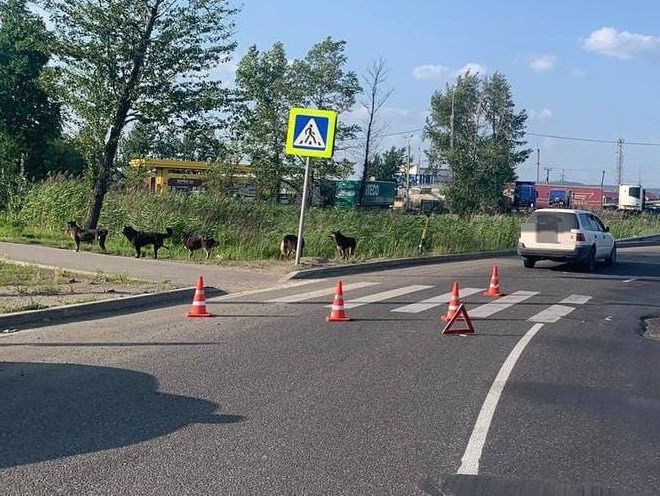 Фотографии с места ДТП опубликованы в официальных пабликах и телеграм-каналах Госавтоинспекции и полиции Иркутской области, а также областной прокуратуры, которая контролирует ход и результаты проверки дорожной полиции по факту произошедшего. На одной из фотографий прямо около того самого нерегулируемого перехода оказались сразу порядка 8-10 бездомных псов с обоих сторон дороги.