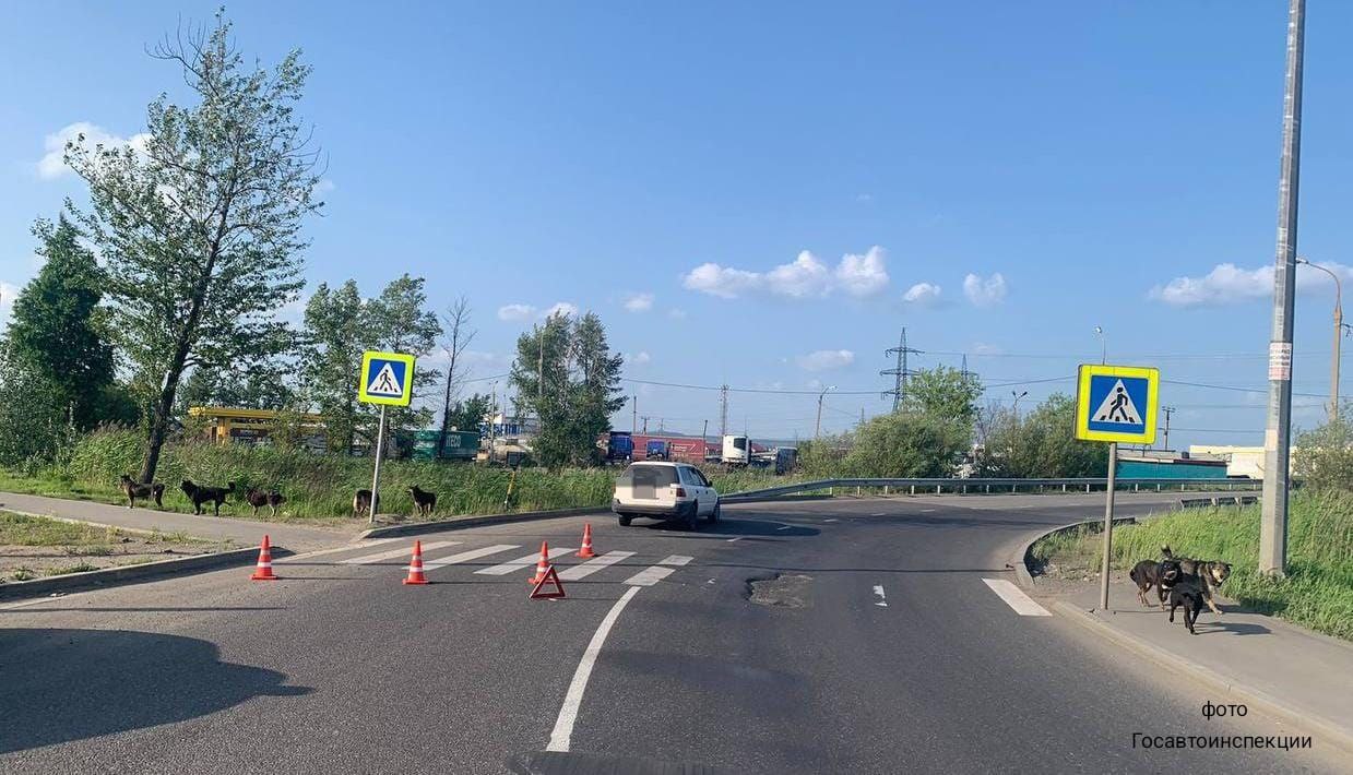 Стая бездомных собак, вольготно чувствующих себя на просторах Иркутска, попала во вторник, 17 июня, на фотографии правоохранительных органов с места резонансного дорожно-транспортного происшествия. Речь идет о вечернем ДТП на улице Трактовой в Ленинском районе города, где пятнадцатилетний водитель электросамоката, судя по всему, внезапно выехал на нерегулируемый пешеходный переход и угодил под колеса легковой иномарки. Мальчика с различными травмами увезли в больницу.