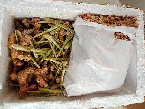 мандариновое дерево — 1 шт.; лемонграсс, клубни батата и корень имбиря общим весом 36,9 кг.