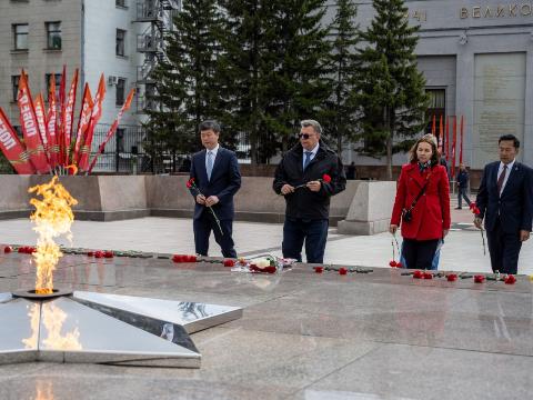 Дипломаты также побывали на мемориальном комплексе «Вечный огонь», где возложили цветы в память о иркутянах, погибших в годы войны, а также к мраморным плитам с именами сибиряков, которые погибли в Китае и Монголии. Экскурсия продолжилась посещением бюста дважды Героя Советского Союза А. П. Белобородова.