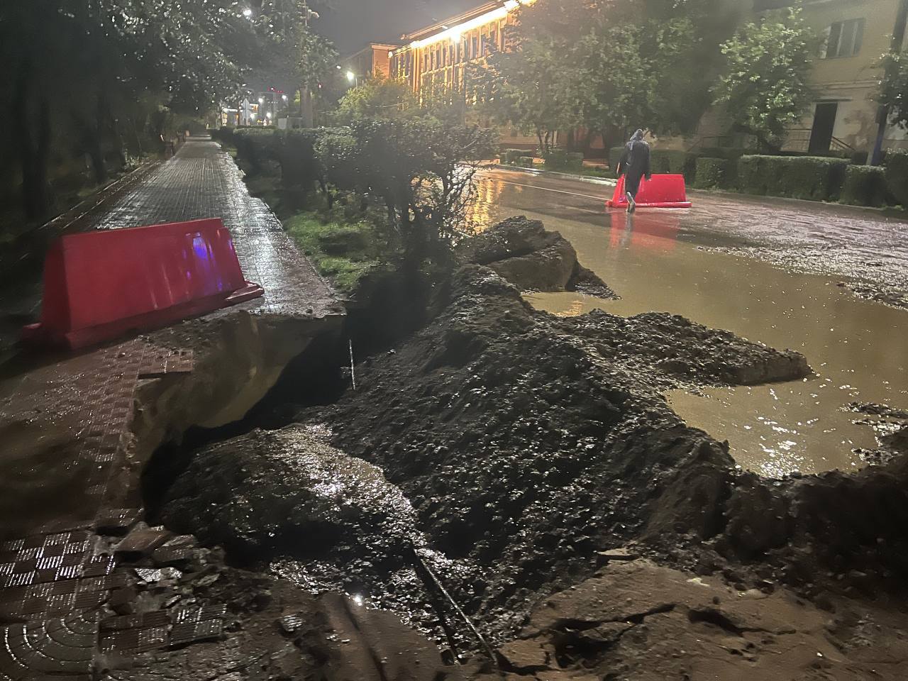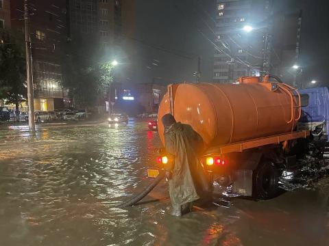 По последней информации, синоптики обещают снижение интенсивности осадков после трех часов ночи. Тогда и начнутся работы по откачке воды с трамвайных путей. К настоящему моменту проведены работы по укреплению насыпи грунта на проспекте Победы подрядчиком, планируется дальнейшая работа в этом направлении. Откачка воды на ТСК продолжается.