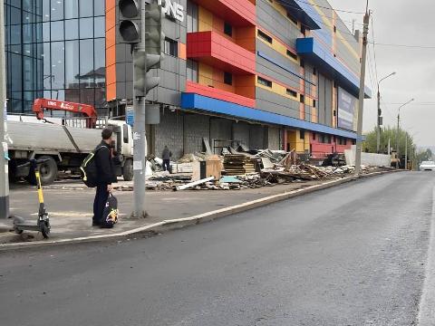 В Иркутске на улице Байкальской завершён демонтаж супермаркета «Берег». Объект был убран по договорённости между администрацией города и собственником торговой точки. Работы выполнил владелец павильона, сейчас с территории вывозят строительный мусор.