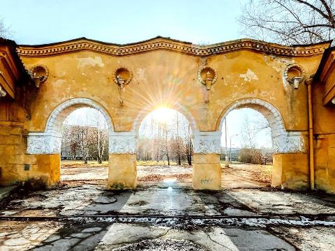 Архитектурные особенности павильона — монументальные пропилеи, изящная лепнина и факельные светильники — придают ему максимально торжественный облик.