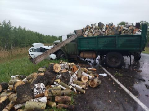 Трагедия случилось в половине шестого часа вечера 27 мая на 170 километре автодороги Омск - Тара в Большереченском районе Омской области. Там 36-летний водитель автомобиля "Рено Логан" выехал на полосу встречного движение и на высокой скорости на мокрой дороге врезался в грузовик "ЗиЛ" с прицепом. Грузовик вез чурки на дрова. Удар был такой силы, что легковушку и сам грузовик развернуло и они оказались в кювете.