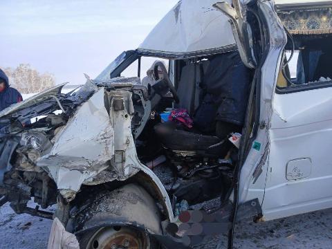 Согласно имеющимся на данный момент сведениям, днем в районе 504-го километра трассы "Омск - Тара" столкнулись микроавтобус "ГАЗ", перевозивший двух работников, и следовавший вперед большегруз. Фура поворачивала налево.